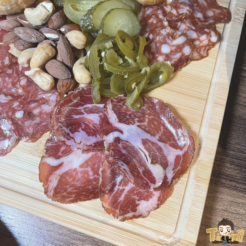 還有喝調酒必備的煙燻香腸也是少不了的,口感完全不輸給國外進口的伊比利火腿喔!