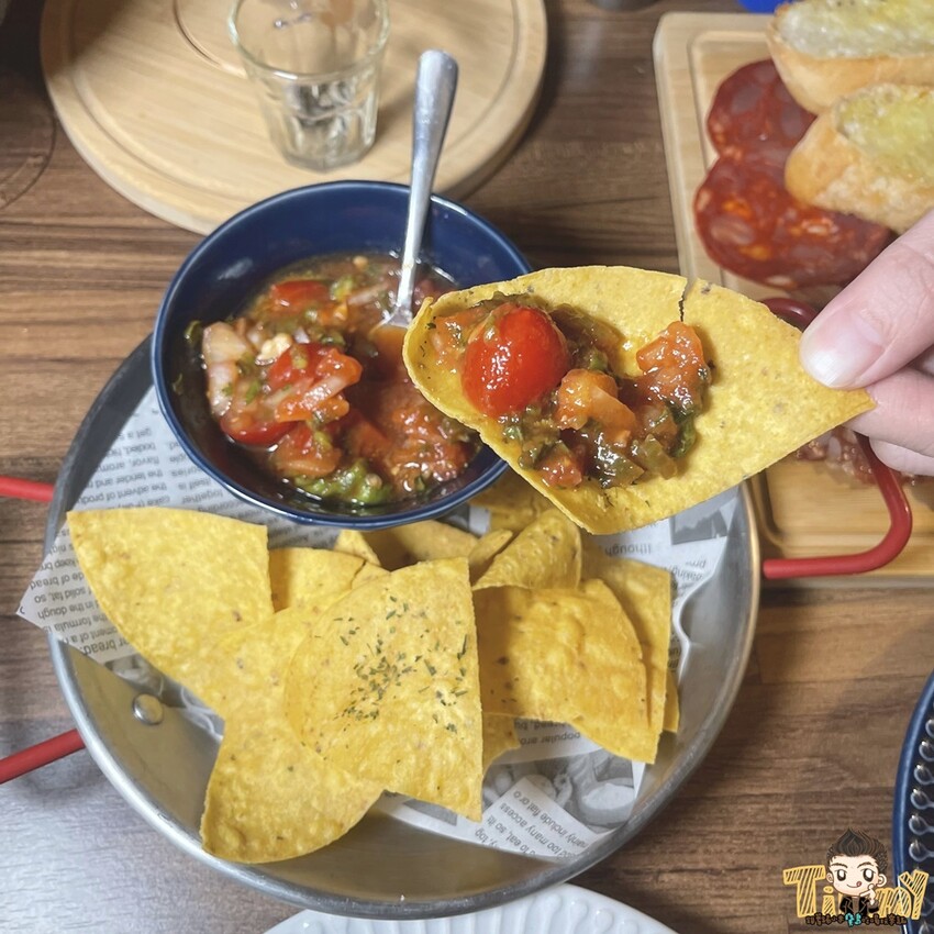 以獨特香料、酸V番茄等食材做成的莎莎醬,酸酸甜甜的不會太辣,和脆餅搭配來吃也是很棒的下酒菜喔