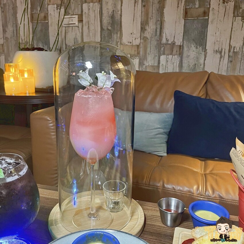 最後一杯無酒精飲料,也非常厲害,浪花玫瑰(300元)還很搞剛的用玻璃罩罩著