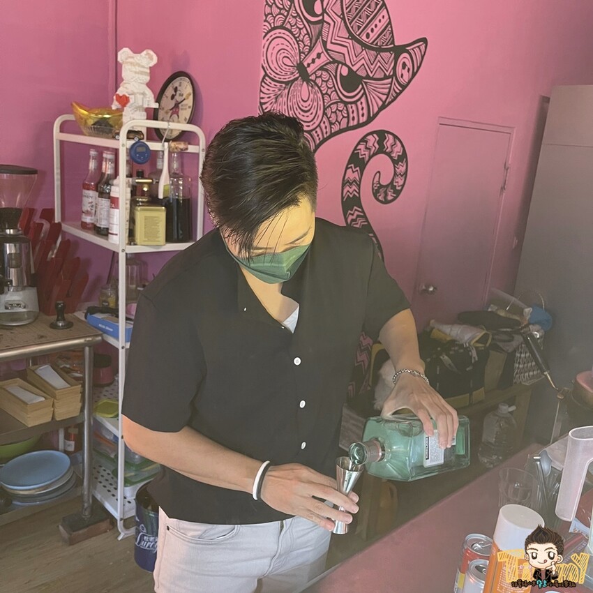 老闆心領意會後就開始製作調酒了,光看這個架勢就很有fu耶