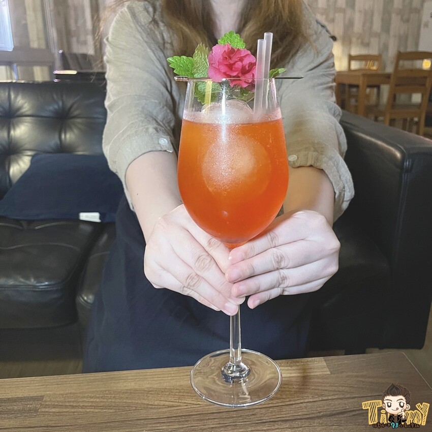 荔枝和玫瑰的香氣,伴隨配上石榴和薑汁汽水甜蜜蜜的滋味,再加上微微的燻香氣,是女士們很喜歡的無酒精調酒,也是小結巴的最愛喔