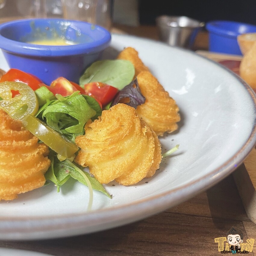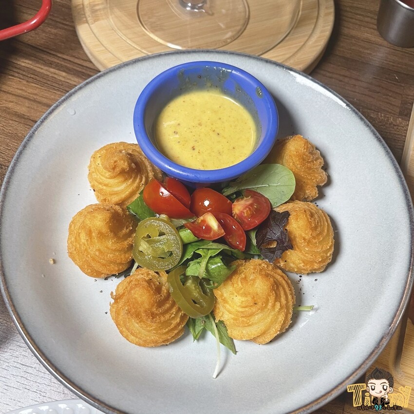 一咬下去是外酥內軟綿的馬鈴薯口感,搭配微辣帶蒜香的美乃滋還挺有特色的