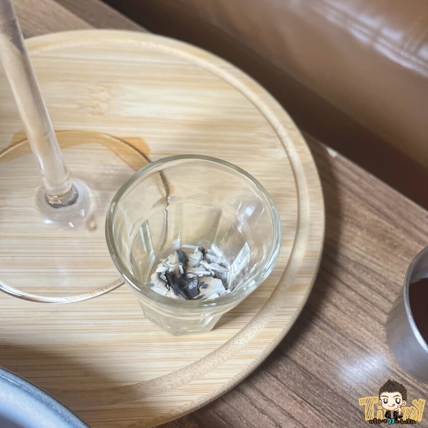 在客人享用的過程中,老闆會化身為二郎神為客人寫上專屬籤詩,喝到一半的時候,就會來跟你解籤詩,進行心靈探索