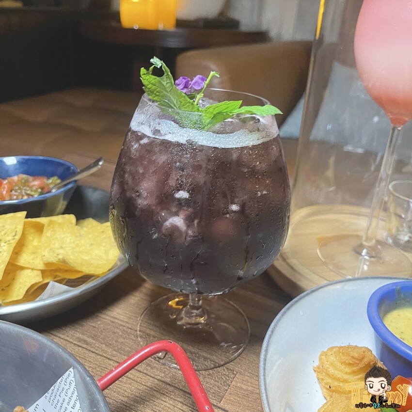 主要有巨峰葡萄的香甜和氣泡水碳酸的口感,屬於帶有甜味的無酒精特調,搭配炸物很解膩喔!