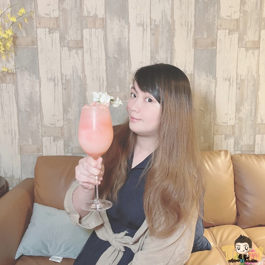 有岩鹽荔枝、玫瑰、石榴、薑汁汽水調和而成,有美麗動人的粉色漸層~