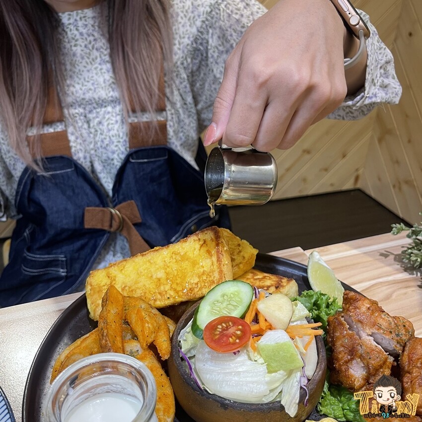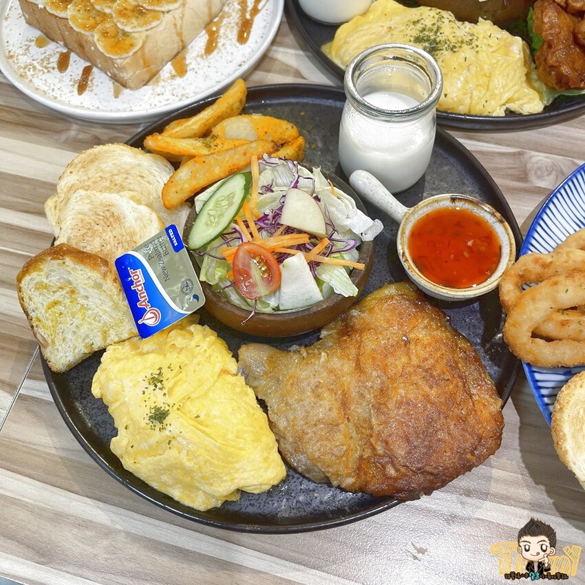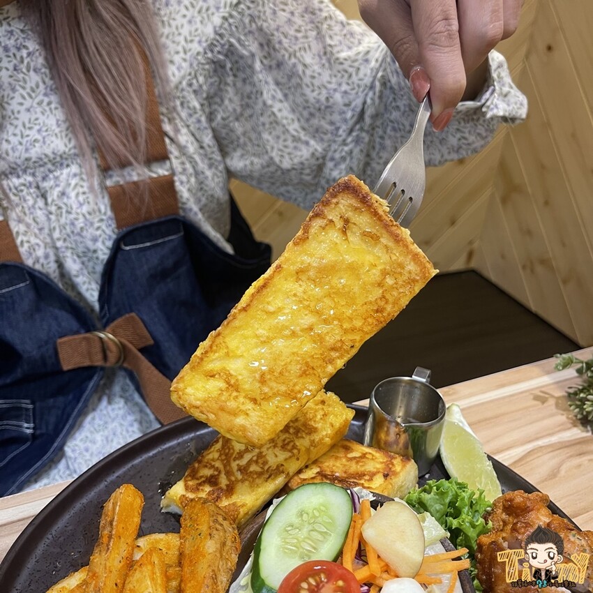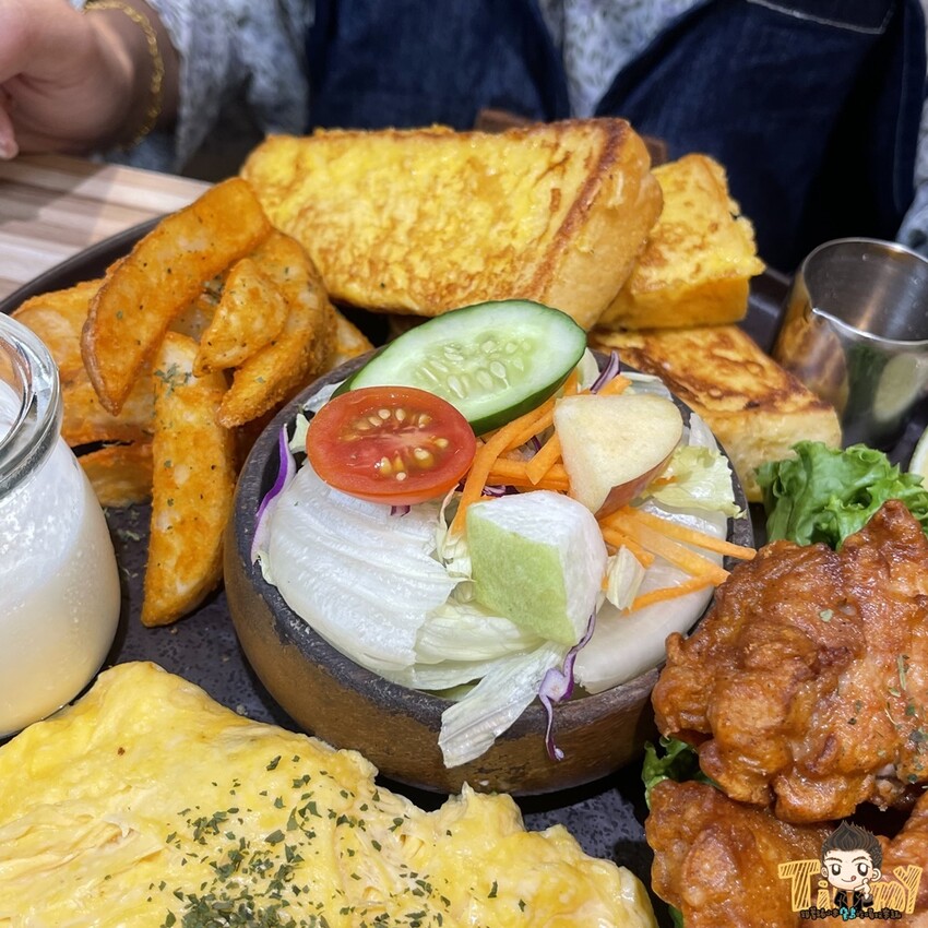 唐揚雞早午餐(320元)也是招牌之一,有日式唐揚雞、歐姆蛋、楔形薯、法式吐司、小沙拉和奶酪等。