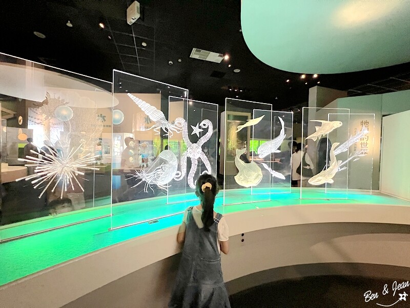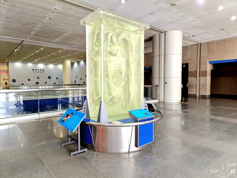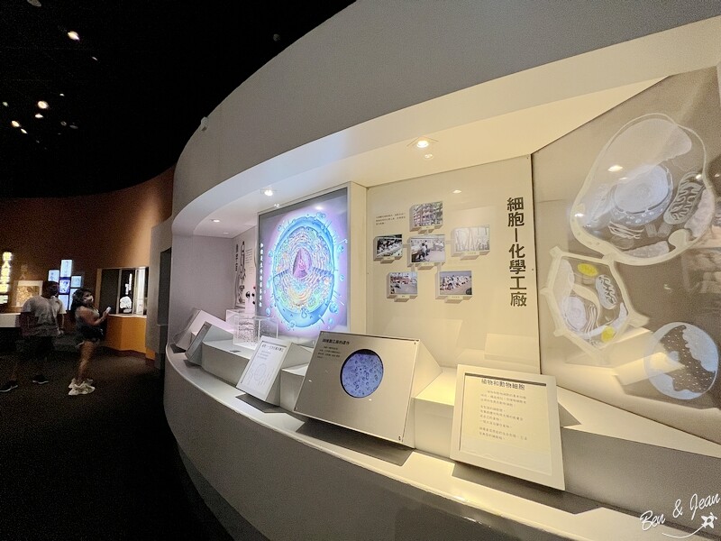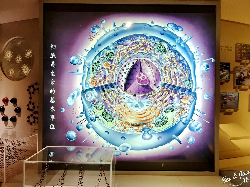 這一區主要有8項模型展示,畫面上直徑2公尺長的透明水母,其他還有由地板延伸至天花板的神經細胞、4公尺高的海帶和2.5公尺高的噬菌體等放大的自然物模型,真的好精采