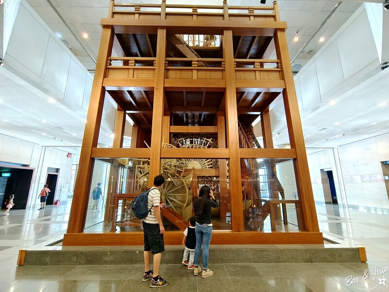 水運儀象臺是世界第一座運用機械原理運行的水力天文鐘, 根據中國北宋時期蘇頌所寫的《新儀象法要》一書,研究復原出 1:1 全尺寸、完全運轉功能的木造模型。展示包含渾儀、渾象及報時木閣等機構儀器,具有天文觀測、模擬星象和播報時間的功能,可以視為現代天文台的鼻祖。