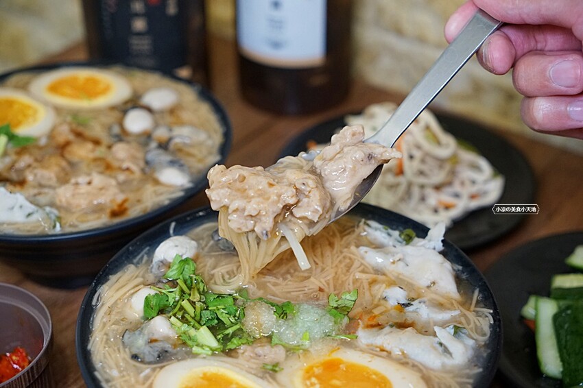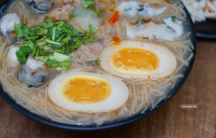 滿溢麵線也就是以四大天王海陸配料添入的招牌麵線(小涼取的XD),但如果你有哪一口味不吃的也可以跟店家講,好比小涼今天不想吃腸子,這一碗滿溢麵線內就只有鮮蚵、手工捏製魚羹、雞肉羹而已,但相對的這三種主食的量也會增加唷!!