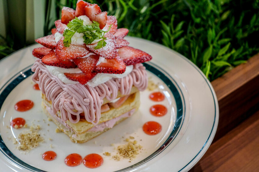 大阪 gram cafe & pancakesX魔王 每日限量招牌厚鬆餅 期間限定草莓鬆餅 大阪城公園內排隊美食 地鐵大阪城公園站 內文有店家資訊