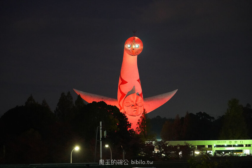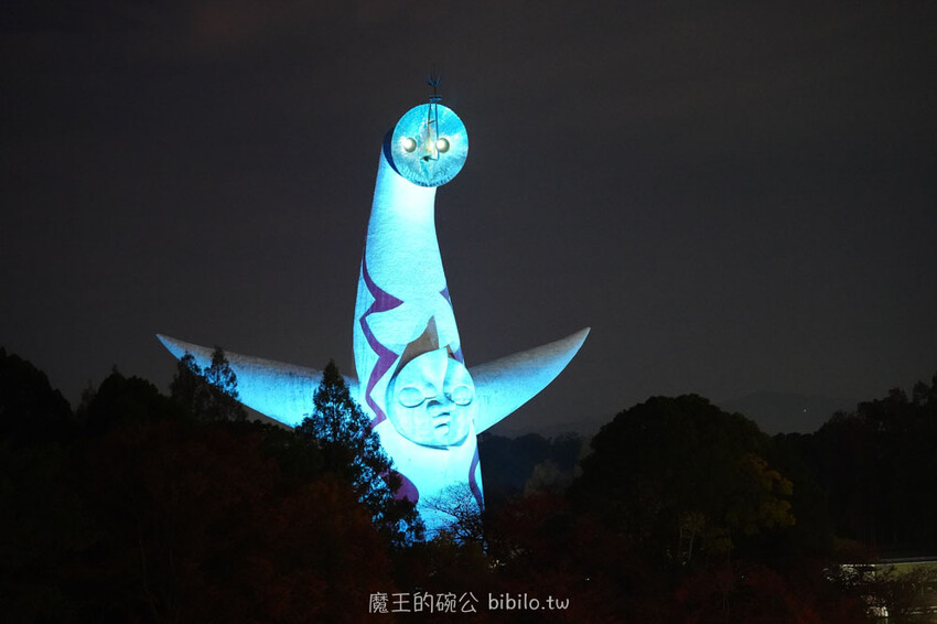 沒有想到 萬博公園內的太陽之塔也會點燈,我整個又驚又喜的一直拍照,不過樂哥說有點詭異就是,我自己很愛,點燈後的太陽之塔,會隨著燈光變化兒也會有不同的感覺喔。