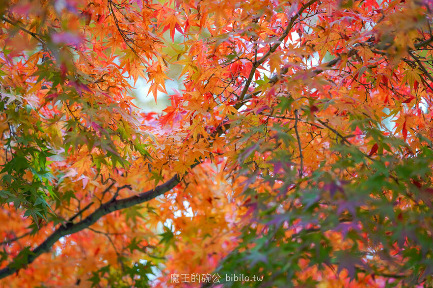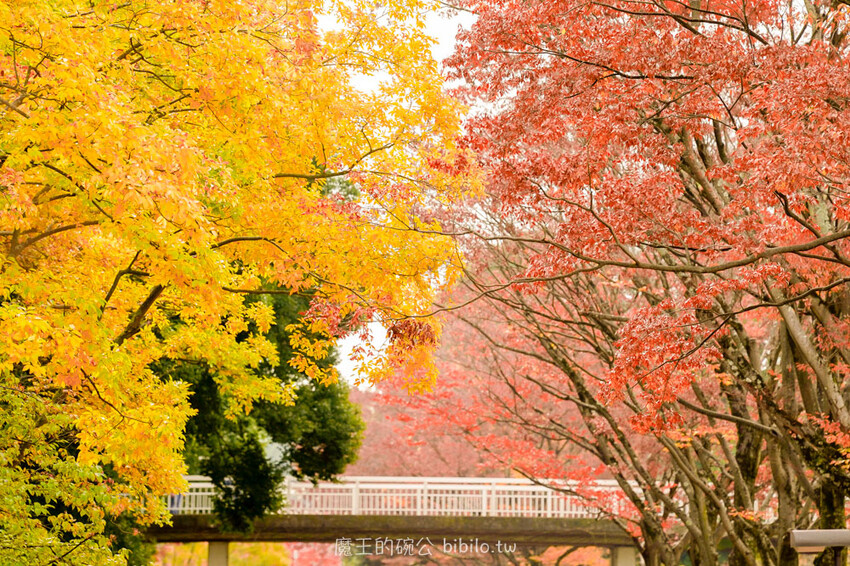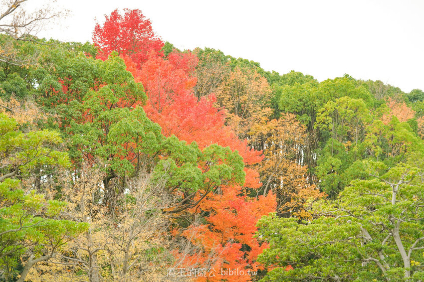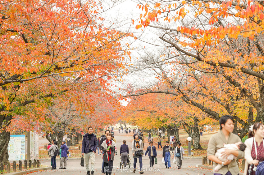 可以來位在大阪府吹田市的 萬博紀念公園『日譯:萬博記念公園』,不僅佔地廣大,園區內有滿坑滿谷紅黃綠交錯的各種槭木科楓樹,以及日本常見的山毛櫸,栗樹,樺木類植物也隨著秋天到來會變成褐色,景色非常優美,