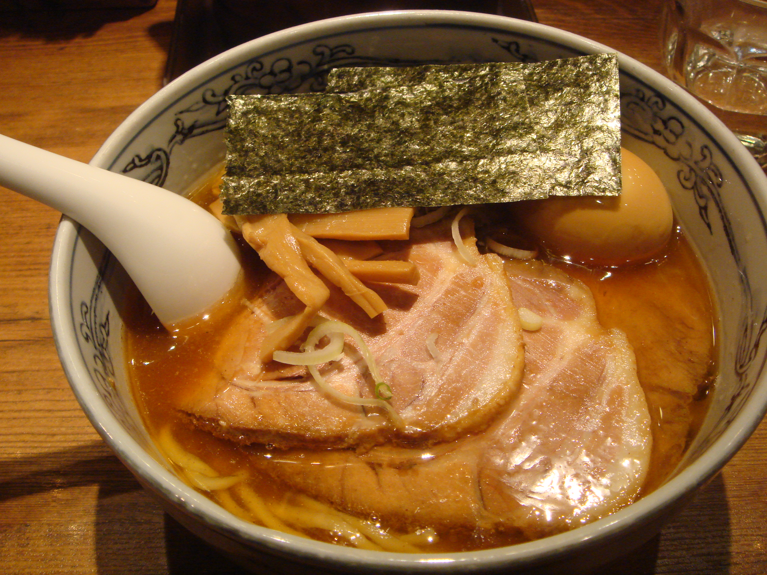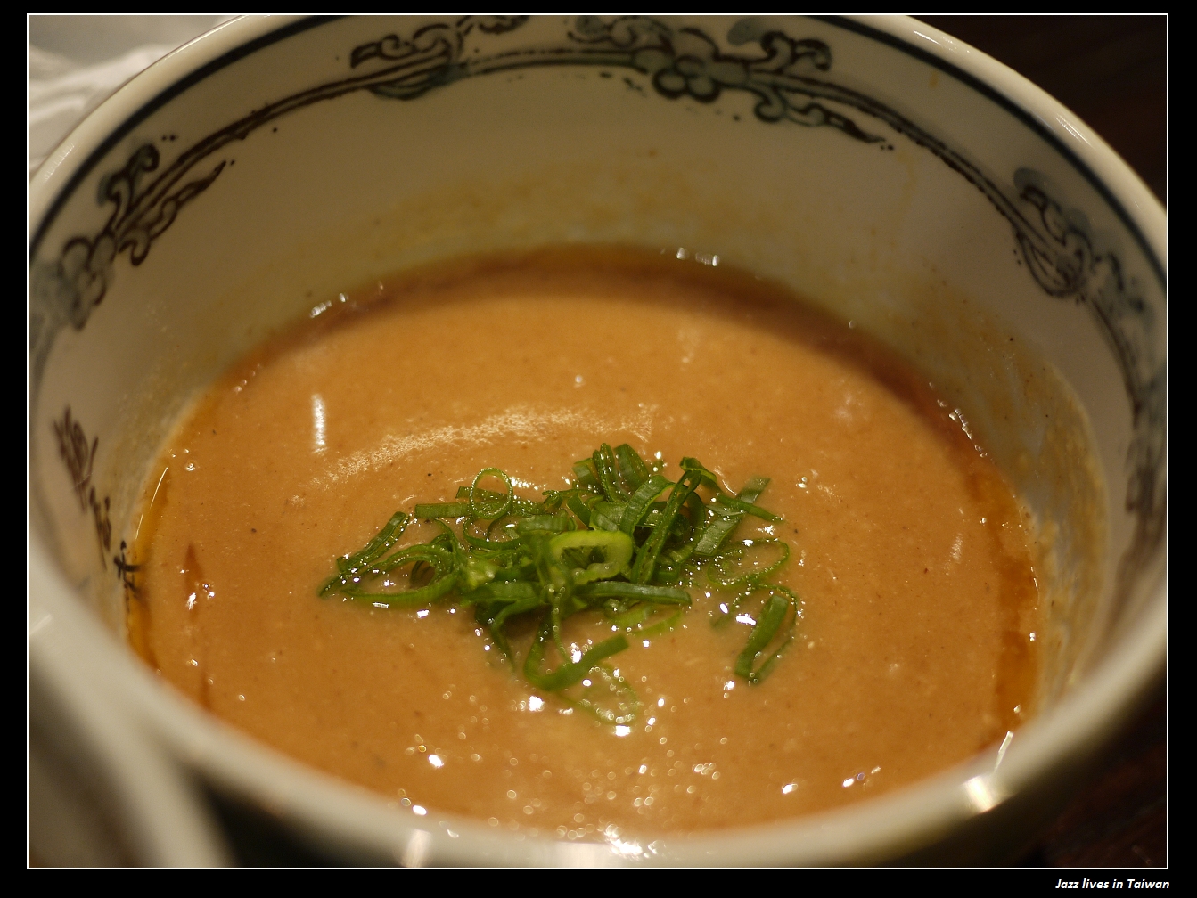 我只喝得出來不是純豚骨, 也不是味噌, 很濃厚的湯頭, 有附半顆溏心蛋, 兩塊叉燒, 筍乾, 蔥花和一片海苔,