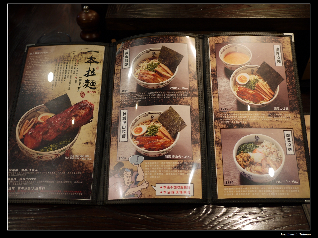 主要只有神山拉麵和咖哩拉麵兩種湯頭, 沾麵則只有濃厚沾麵一種,