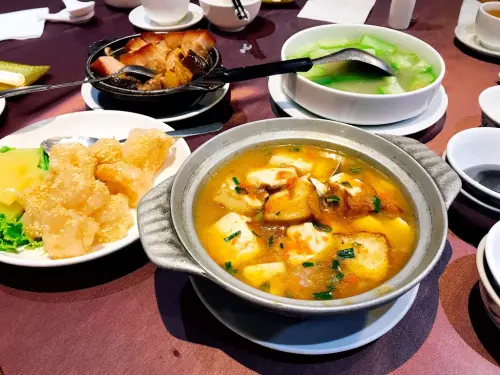 蟹黃豆腐也是經典上海菜之一,將蟹肉磨成泥後,加入蟹黃、豆腐及筍片等配料拌炒,
