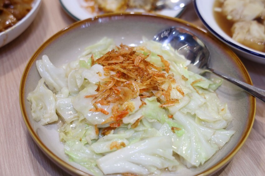 在這麼多肉類餐點中,出現這道高麗菜,本來有點疑惑,但精選的高麗菜,吃得出脆甜滋潤感,櫻花蝦帶來的鮮味,也令口感更加地爽脆。