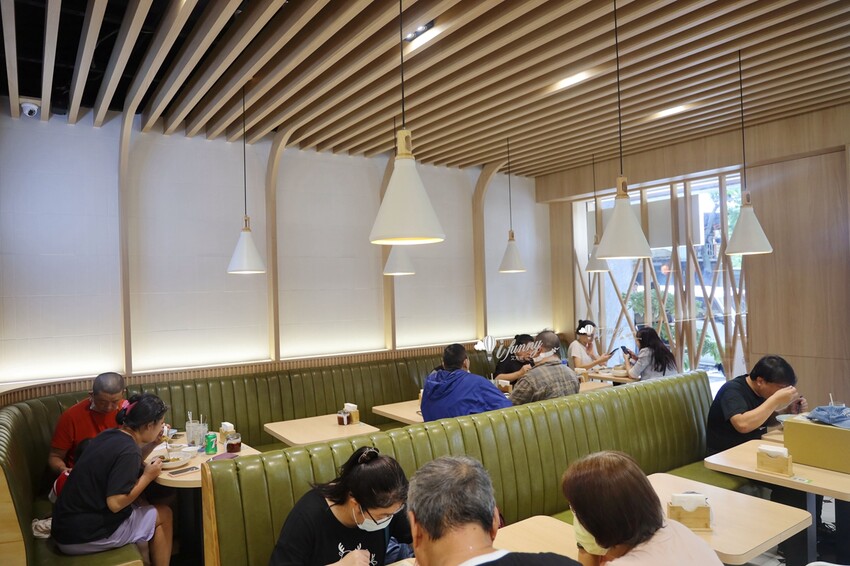 木條組成的天花板與同色調的桌椅,還有互相呼應的燈具及椅背,製造出很清新的氛圍,白色磁磚加上黑色點點,整體與印象中的香港茶餐廳,有著別出心栽的感覺。