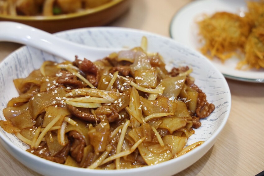 港式臘味蘿蔔糕加入XO醬拌炒,醬色誘人香氣十足,軟綿可口搭配脆口的豆芽等青菜,無懈可擊的表現。