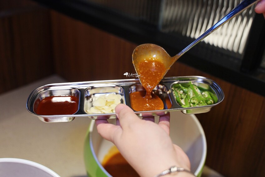 餐桌上已備好四格醬料碟,自行挑選搭配。
