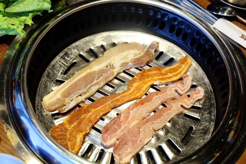 吃韓式烤肉怎麼可以少了豬五花呢?這天我們點的五花肉調味分別是蒜味、辣味及椒鹽。