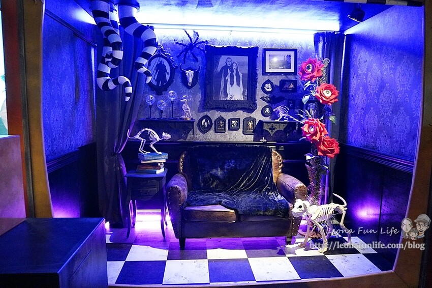復古的家具搭配上恐怖細節滿滿的道具,