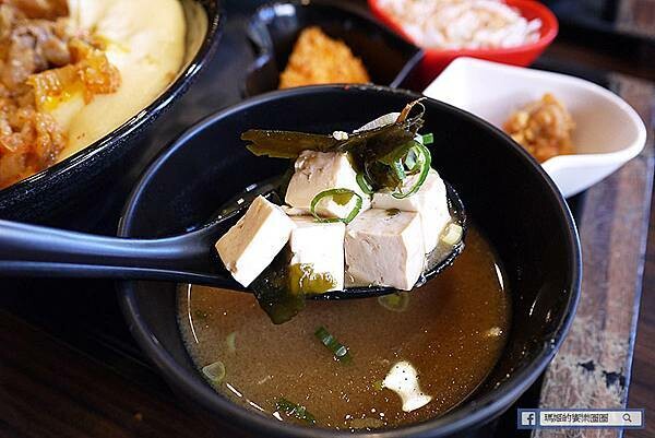 店裡附的味噌湯不死鹹,裡面還有不少的豆腐和海帶,爽口甘甜的味噌濃淡適中,喜歡喝湯的還可以續哦!