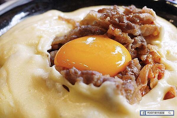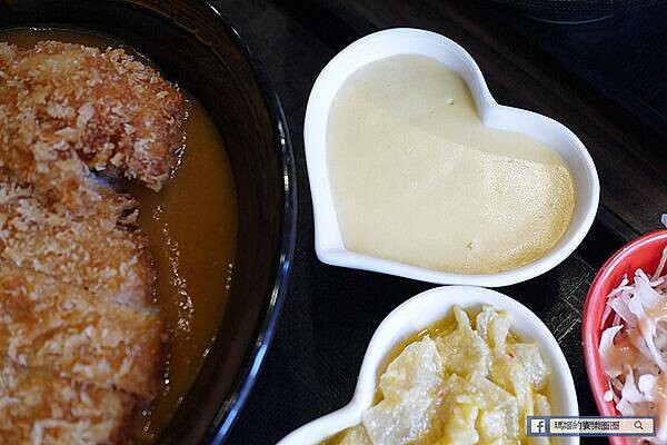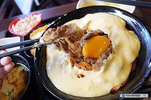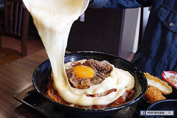 附上一大碗的牛奶起司熔岩醬,建議趁熱倒上丼飯口感最好。