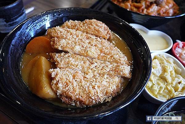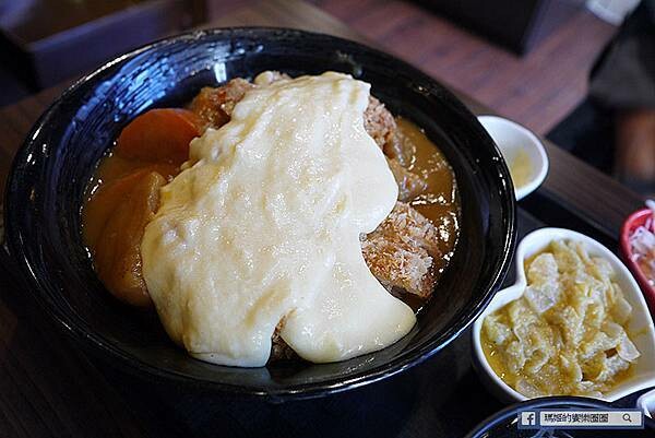 起司熔岩咖哩豬排丼208元,炸成金黃色澤外層裹上香酥的麵包粉,光看就讓人食指大動!
