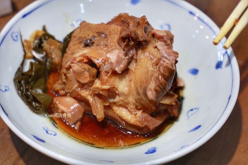 豬腳的外衣裹起琥珀色,放入大量的洋蔥、蔥跟蔭瓜、蔬菜,增加甘甜味,與以往的滷肉大不同,原來這些配方都是由阿嬤傳承下來的,甘味與甜味的加成風味,讓你愛不釋手。