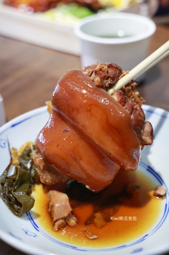我們原以為這樣就挺有飽足感,想說來試試看豬腳的味道究竟如何?真沒想到這筷子碰上豬腳,蹦出了愛的火花~帶皮帶筋的豬腳,吃起來真的是好過癮!