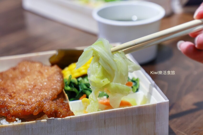 打開便當的霎那間,沒想到連裡頭的規格也很細緻,三格的小盒子分裝不同的配菜,也避免米飯沾黏到蔬菜的汁液,乾爽的感覺油然而生,看起來就是忍不住想要夾筷子開吃囉。
