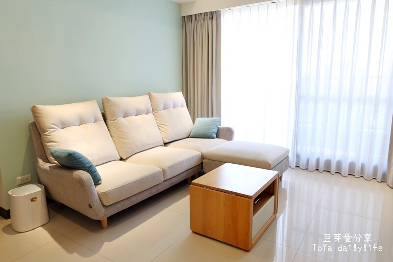 跳色的牆面增加了活潑的感覺,沙發的配色我們是自己挑的(當然有詢問設計師的意見 哈),和整體空間很搭!