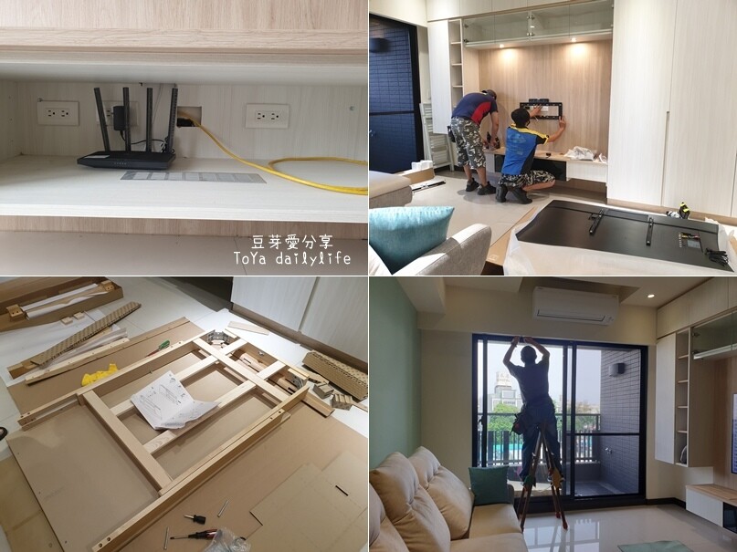 ▲左上:網路、右上:電視、左下:自行組裝餐桌、右下:安裝窗簾