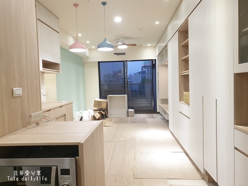 系統板進場時,覺得房子內瞬間多了好多東西,看到櫃子組裝起來的模樣,真的越來越有家的感覺~
