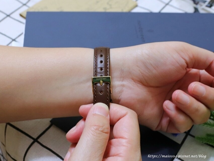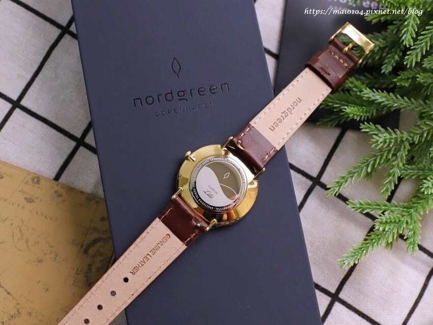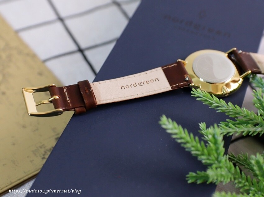 棕色皮革錶帶的背面也有秀上Nordgreen字樣