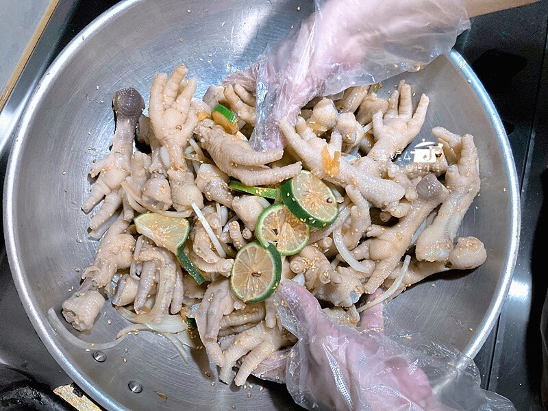 把雞腳的雜沫清洗乾淨後再反覆用冰水清洗兩次後瀝乾水分