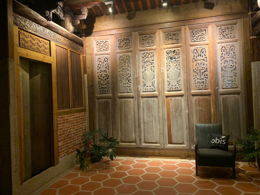 小六路厝位於金寧鄉的后沙聚落,古蹟歷史已有155年,周遭圍繞著以厚實磚瓦石砌成的古厝,旅人可隨處飽覽古色古香的建築,紅磚牆面、雕花櫺窗、木雕屋頂盡收眼底,而民宿堅持以組合式堆疊、掛置方式翻修,老闆簡瑞鴻表示,「旅館民宿不只是商業場合,更是說故事的場域。」不願破壞原結構做過多裝潢修飾,就是希望大家看見這棟建築本來的歷史價值。