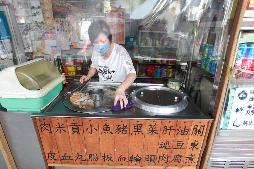 小高原本要去阜東氏號所買麵包分享,結果阜東氏號所因重新裝潢(沒營業),在附近發現這家雜貨店有買黑輪,在好奇心趨勢下順便品嚐與分享,老闆娘說雜貨店開業超過40年,當然這附屬黑輪攤也超過40年,開在這裡客群都是附近居民為主,店家賣的關東煮有8成均一價10元,小高點三樣就一大碗才花費 30 元,品嚐完覺得美味定價超親民,值得樂天小高極力推薦給您品嚐。