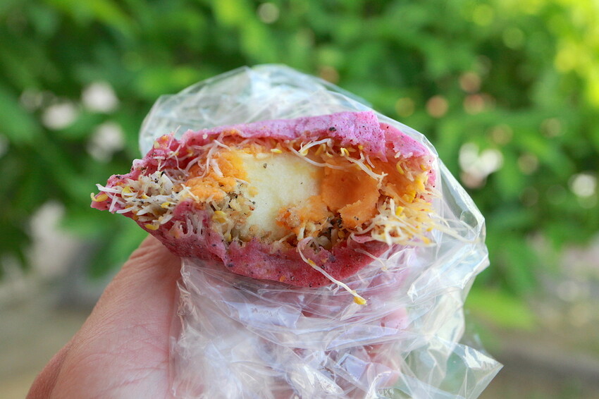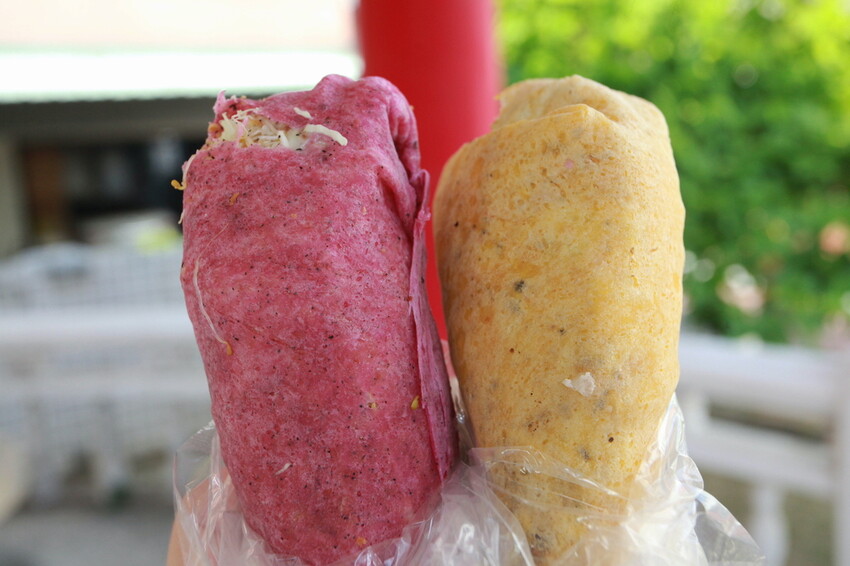 開車經過仁和路發現這家「苜見-手工苜蓿芽捲」,攤位擠前滿購買顧客吸引我購買,老闆說沒有優惠就知道是開幕不久,剛開幕顧客嚐鮮心態生意好是應該,上網查才得知是來自雲林創意美食,這捲皮使用天然食材來當色素,做出色彩繽紛餅皮是很吸睛,這樣製作方式市面上早就有了,而店家採用苜蓿芽當主題是很罕見,品嚐完覺得美味定價合理,值得樂天小高推薦給您品嚐。