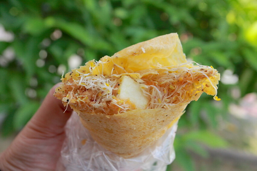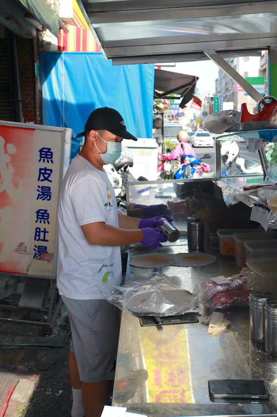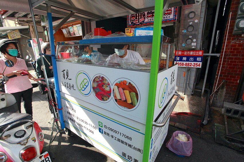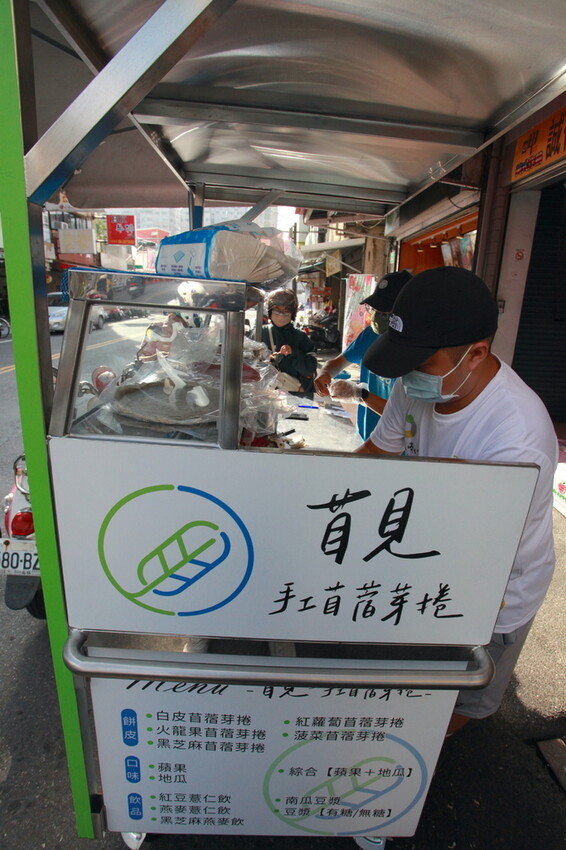 小高有點建議這攤車檯面上需要改進,製作苜蓿芽捲就在檯面上直接製作,會讓人感到有點髒亂影響到觀感,在這檯面上再製作料理檯面較好。
