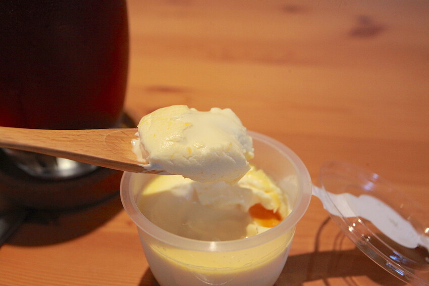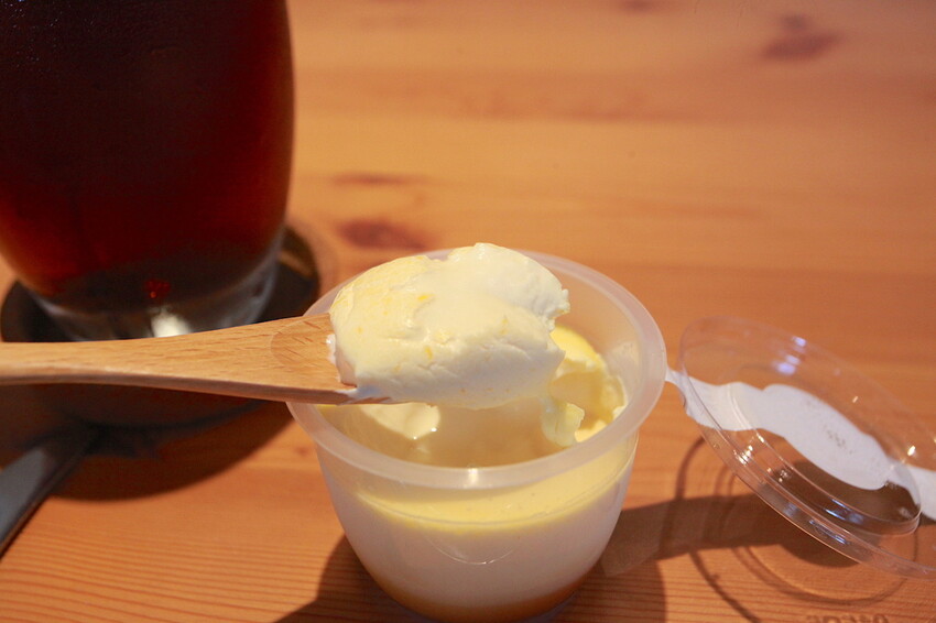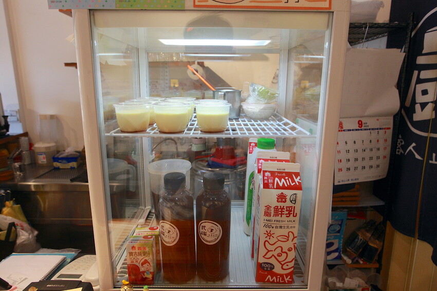 吧台上有放置小冰箱裡面有布丁供享用。
