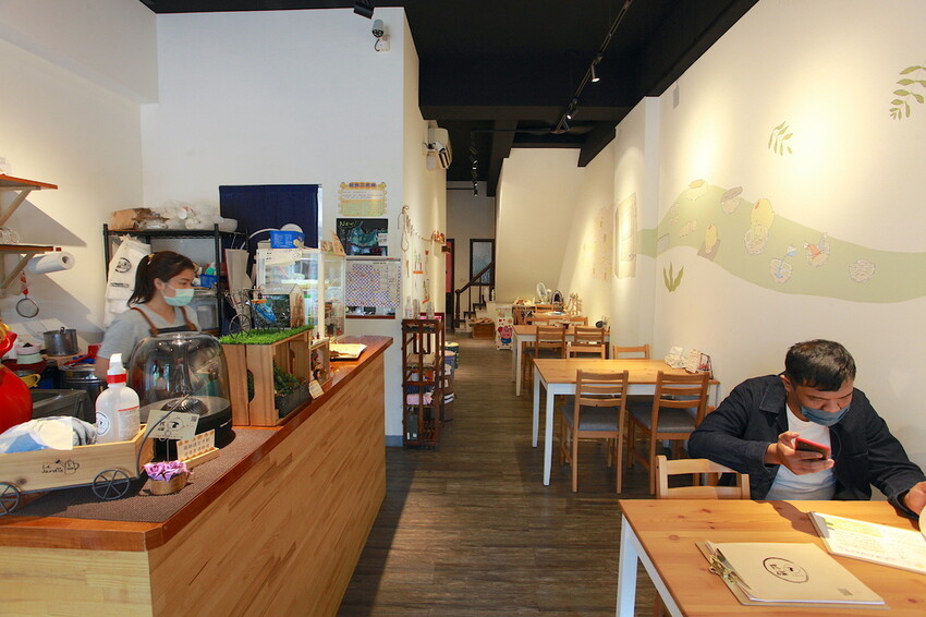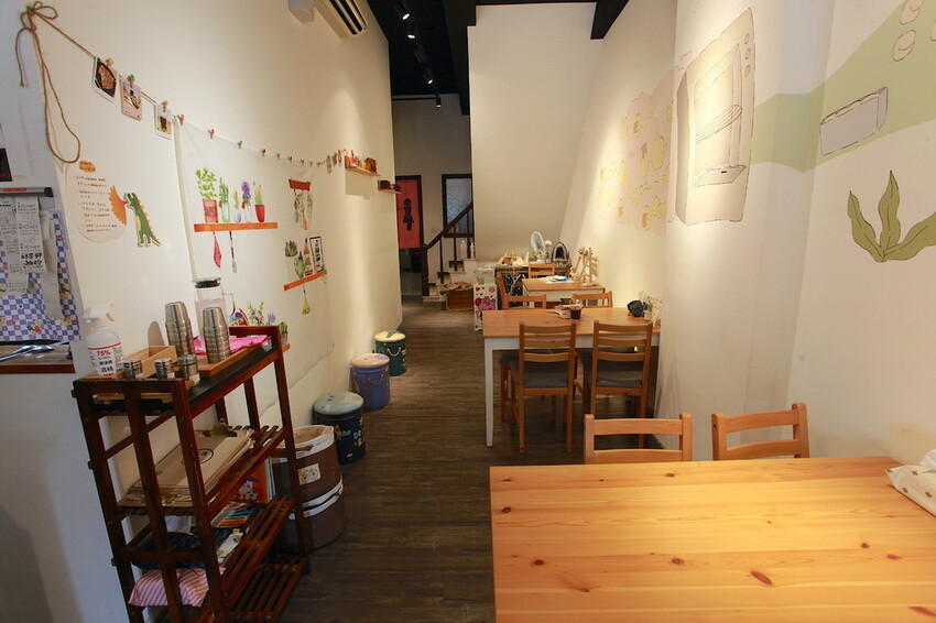店內後方有放置桌椅供顧客坐下來用餐,店面深度很深座位數很多不至於客滿,裡面裝潢比較像是居家溫馨氣息。
