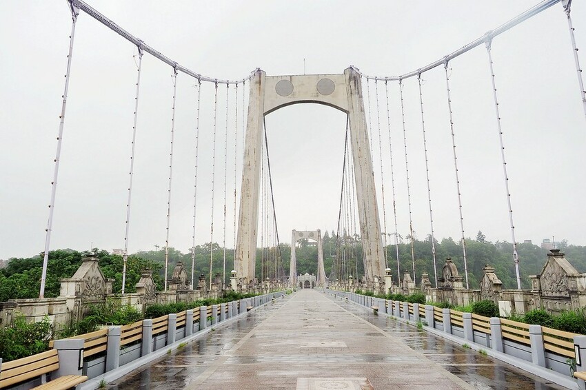 大溪橋早期為竹木板橋.日治時期改為雙孔鋼索吊橋