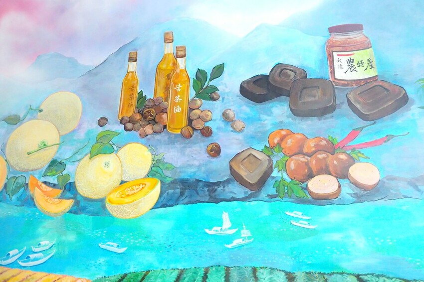 將大溪地區的特色包含建築.美食.文化等意象直接彩繪在壁面上