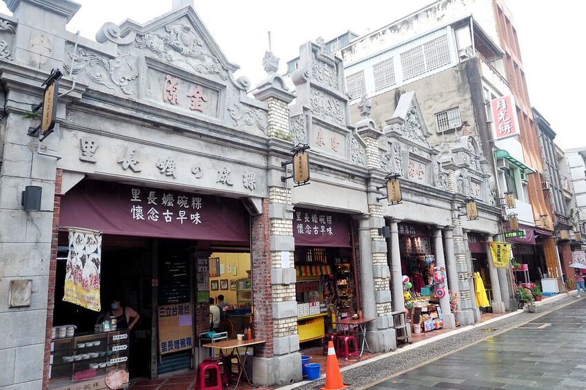 建築型式和台灣早期的傳統商店一樣都是面寬窄縱深長的深長形連棟店面住宅的「街屋」型式