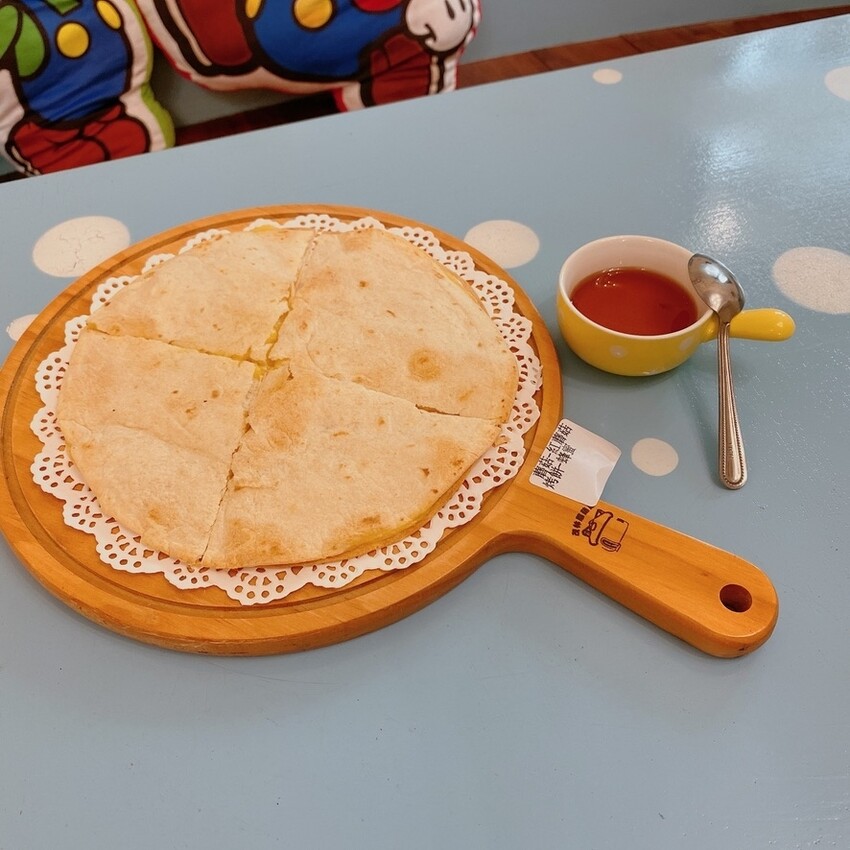 烤得香脆的餅皮,包著滿滿的起司, 一拉起來就牽絲了~(療癒)
