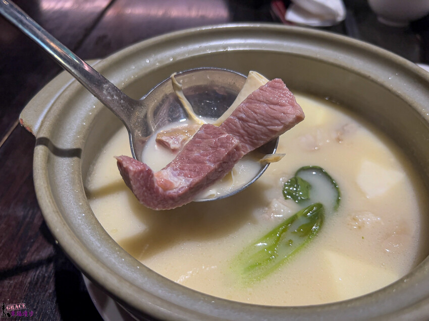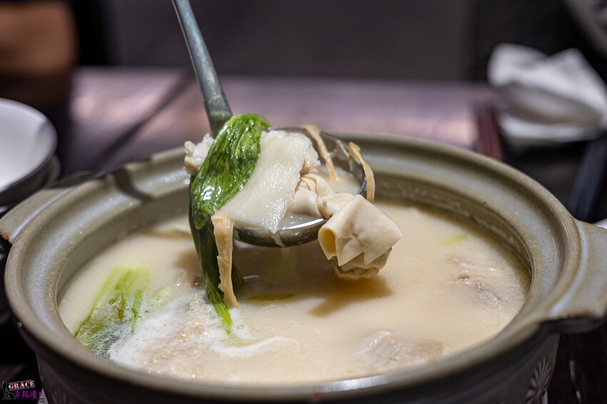 醃篤鮮的食材還挺豐富的,筍片、百頁結和青江菜等等,再用火腿提出鹹味,整個醃篤鮮該有的元素都在這一鍋裡,湯頭濃郁且鹹度恰到好處,很喜歡這道湯品的呈現。