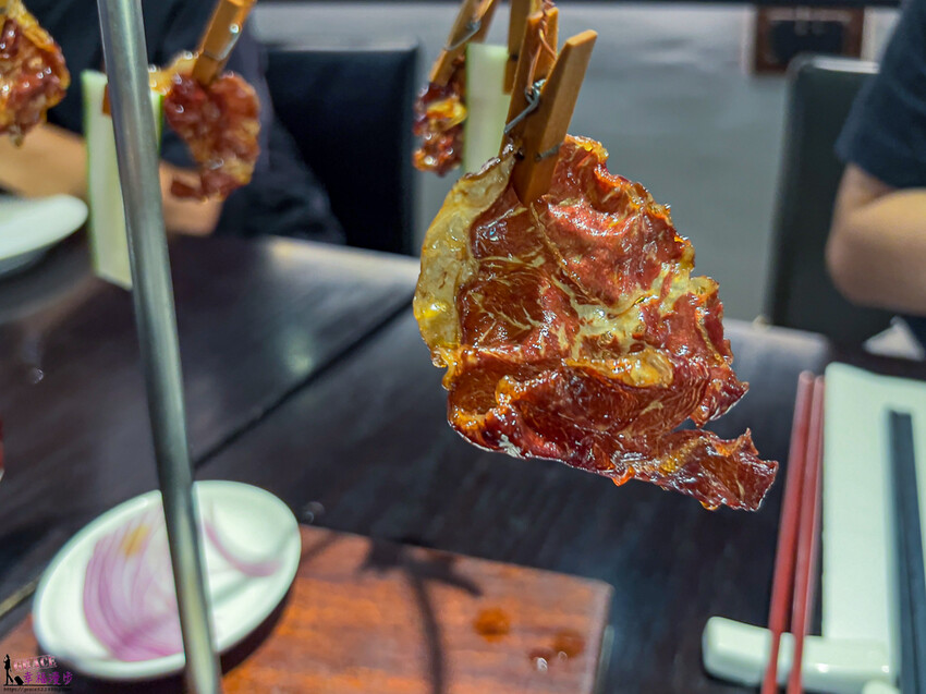 這牛肉片相當薄幾乎可以透光,口感上相當酥脆還帶點肉汁,入口後牛肉香氣在嘴裡慢慢散發出來。