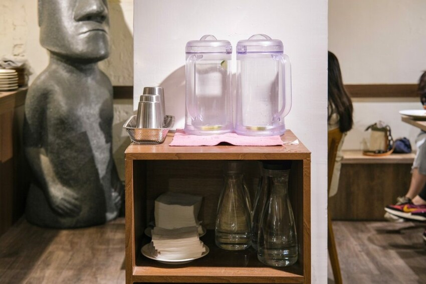 ▼【金孫韓廚義大利麵】採取自助式用餐服務,冰檸檬水和餐具都可自行拿取,用餐不額外收取服務費~