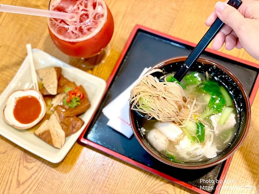 我最喜歡泡沫紅茶店的原因的就是紅茶很好喝又大杯,茶點也是超好吃!想吃午餐的話,不妨點一份雞絲麵或者是砸碎米粉,像我當天就點一份雞絲麵配上豆干,再來一杯風味番茄汁!懷舊的滋味超棒的。
